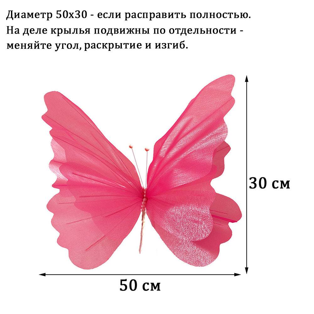 Бабочка из органзы 50 см, малиновый