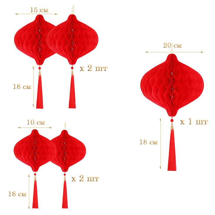 НАБОР бумажное украшение Шары-соты с кисточкой, красный - 5шт: