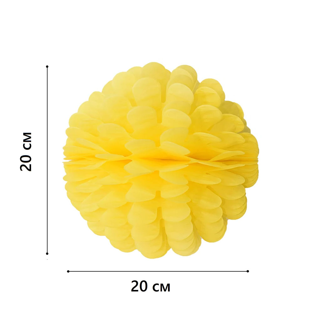 Бумажное украшение Цветочный шар-соты 20 см, желтый