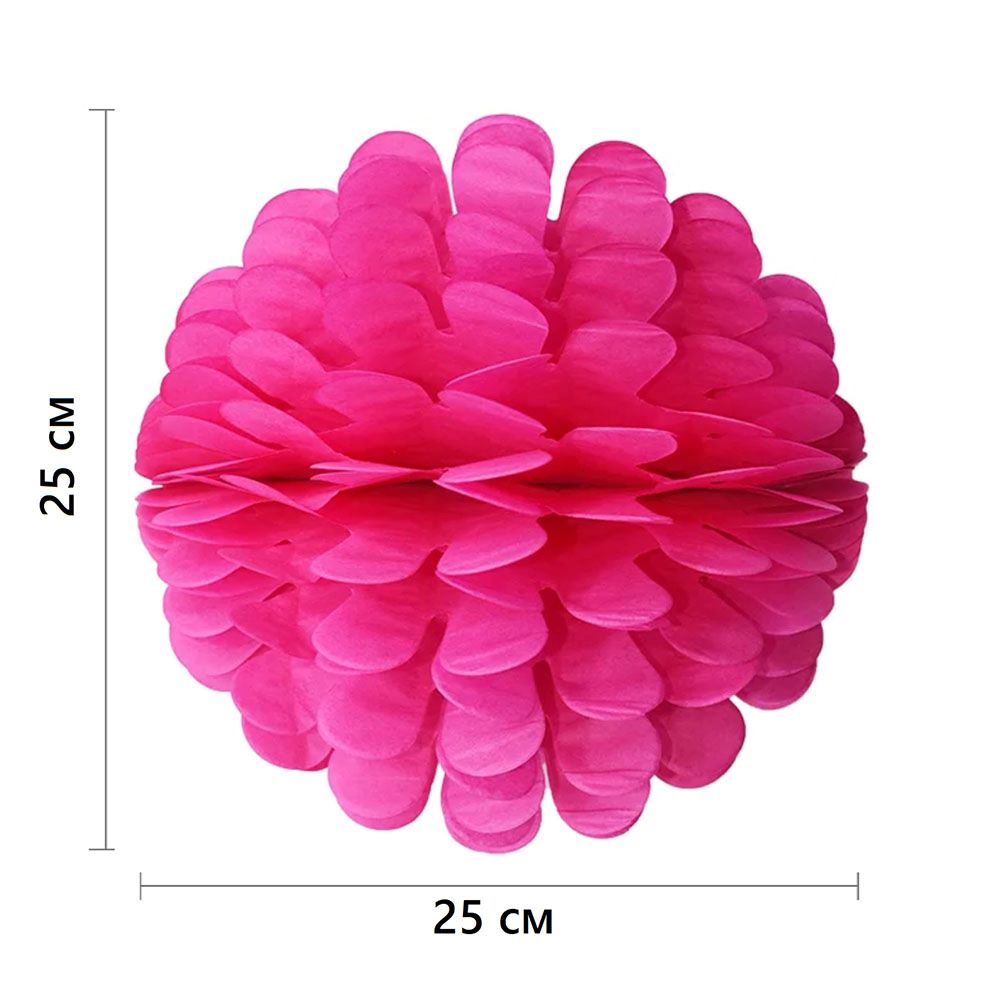 Бумажное украшение Цветочный шар-соты 25 см, малиновый
