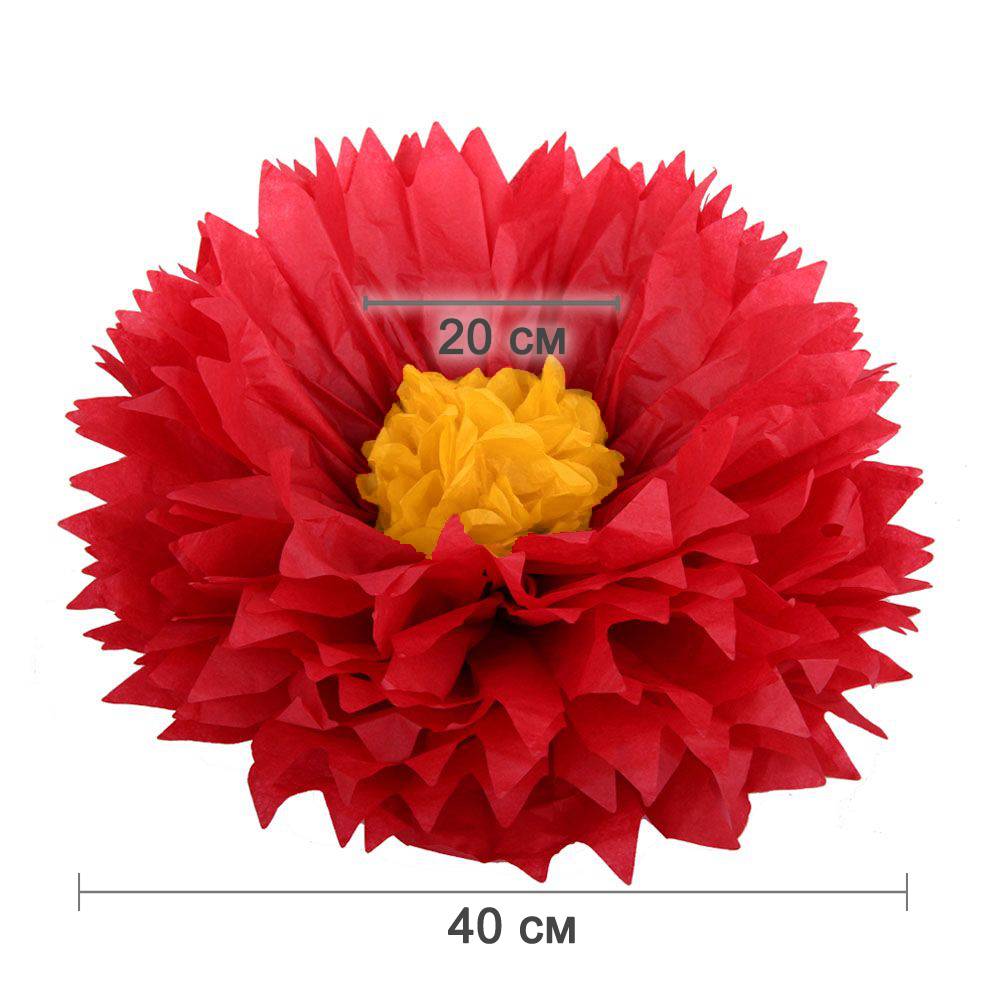 Бумажный цветок 40 см красный+желтый