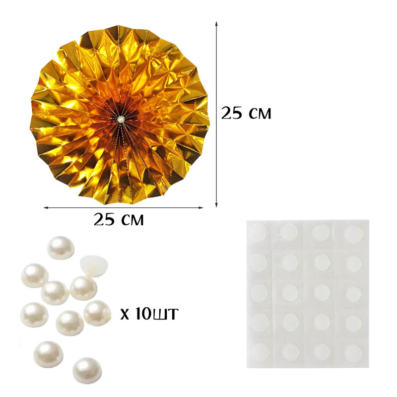 Фанты фольгированные с жемчужиной НАБОР 10шт х 25см, золото
