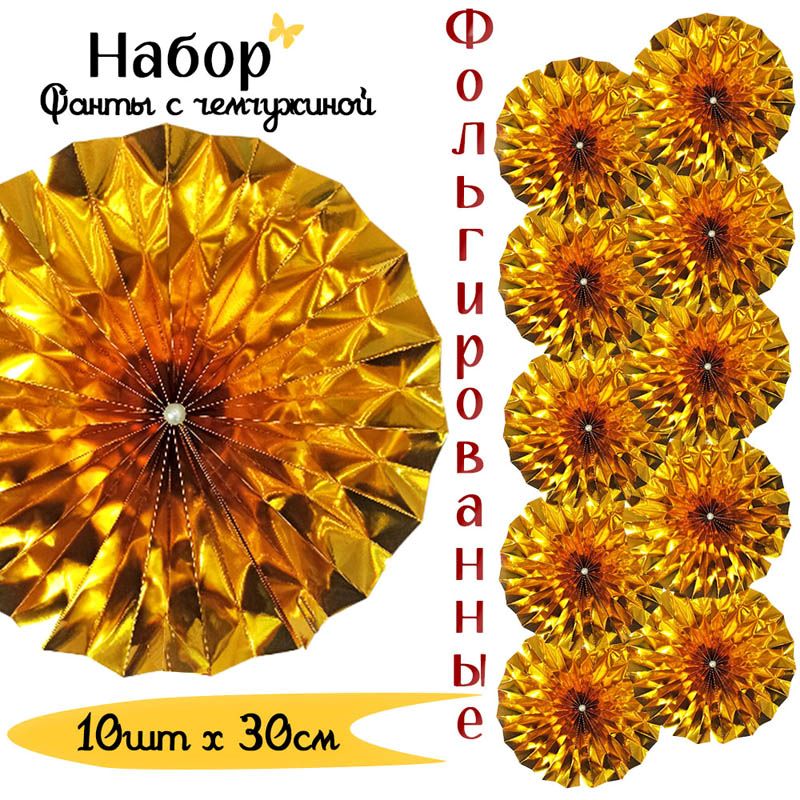 Фанты фольгированные с жемчужиной НАБОР 10шт х 30см, золото