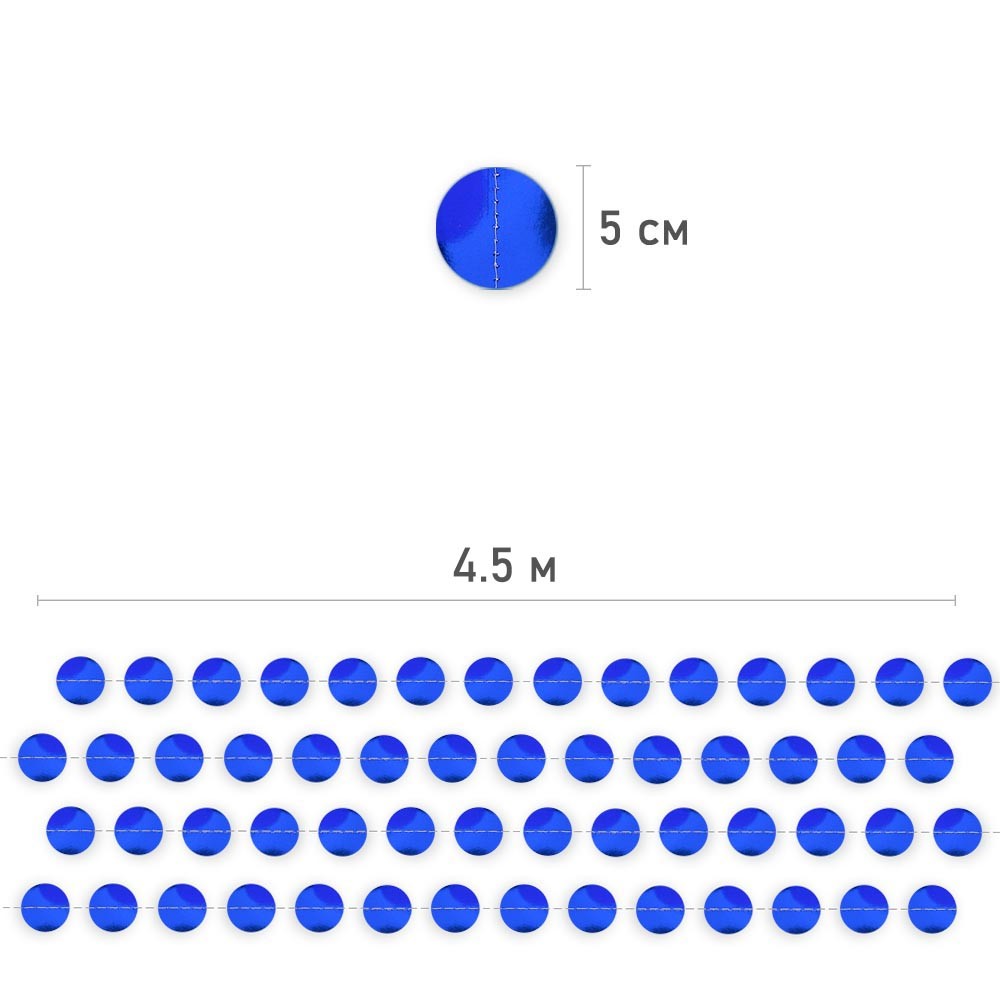 Гирлянда "Кружочки" металлик 5 см х 4,5 м, Синий