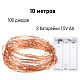 Нить "Роса" медь, 10 м х 100 диодов, от батареек, теплый белый