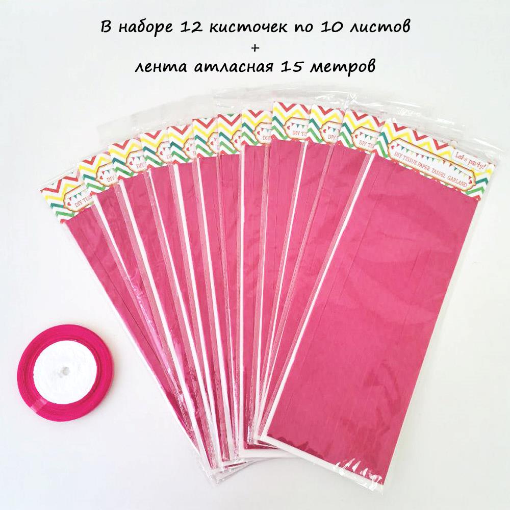 Гирлянда тассел 12 кисточек по 10 листов, малиновый
