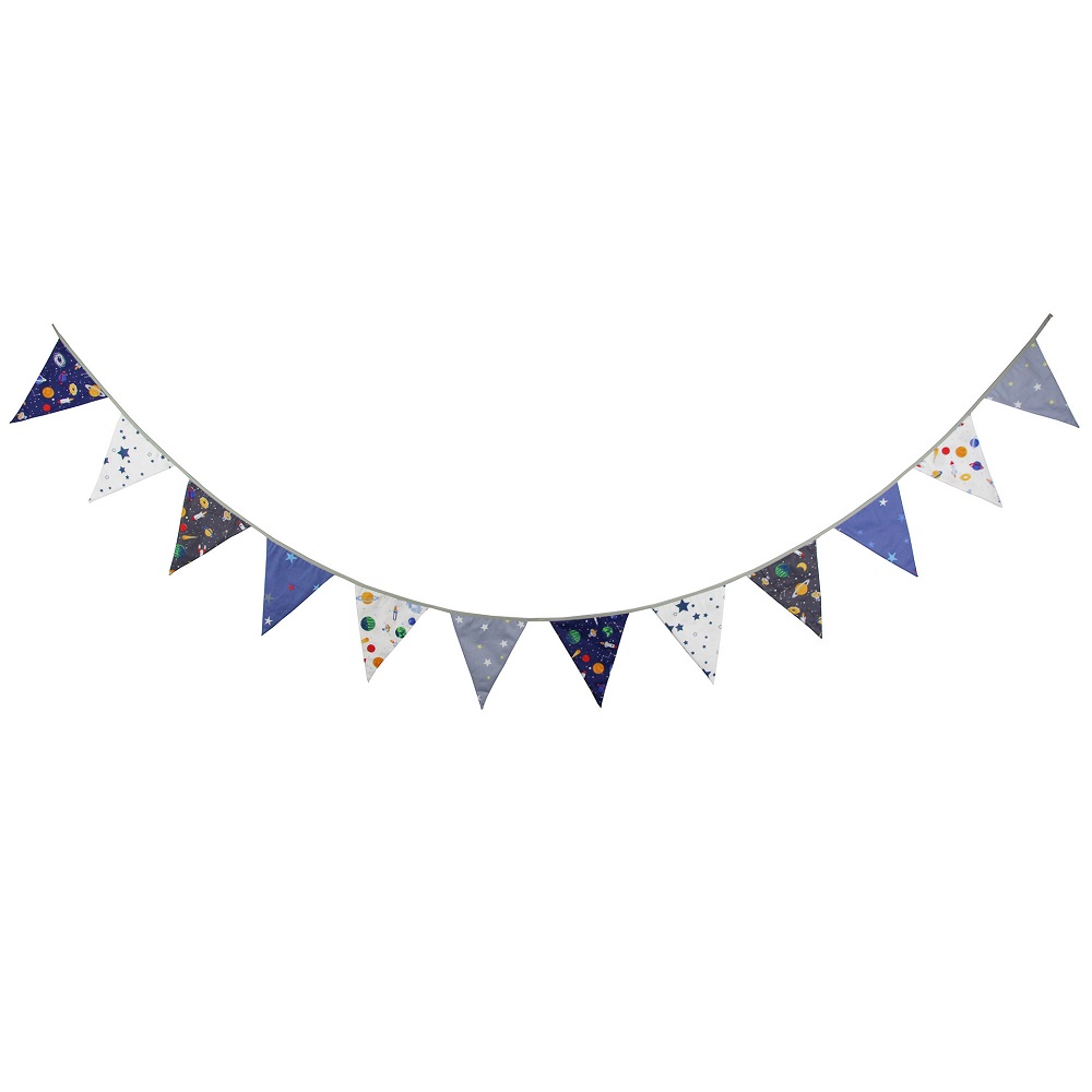 Гирлянда состоит из 12 флажков. Расстояние между флажками - 6 см, общая длина составляет 4 м.