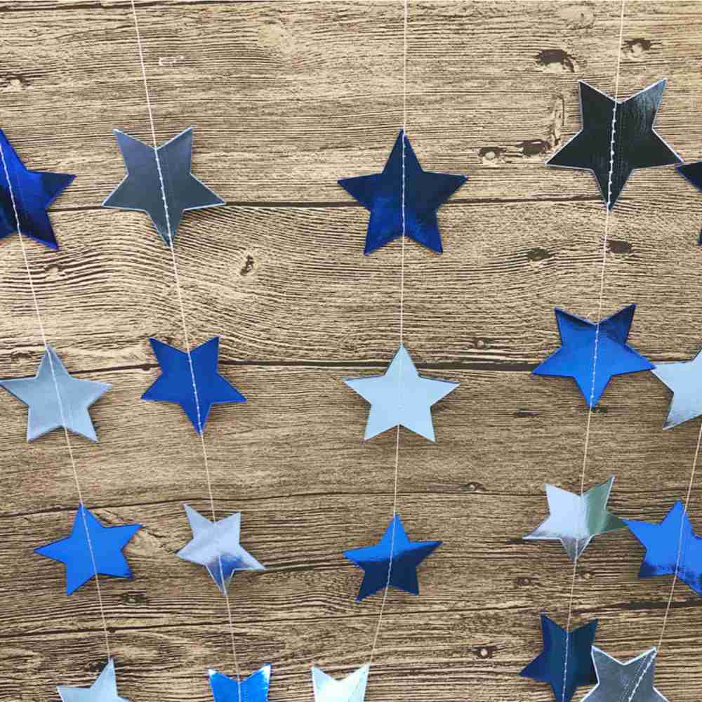 Гирлянда "Звезды" металлик 7 см х 4 м, голубой+т.синий