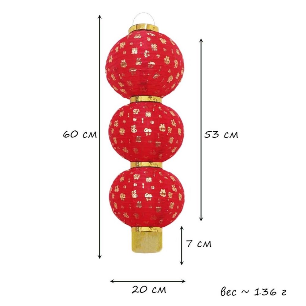 Китайский фонарь Круглый с надписью, 3 яруса 20см