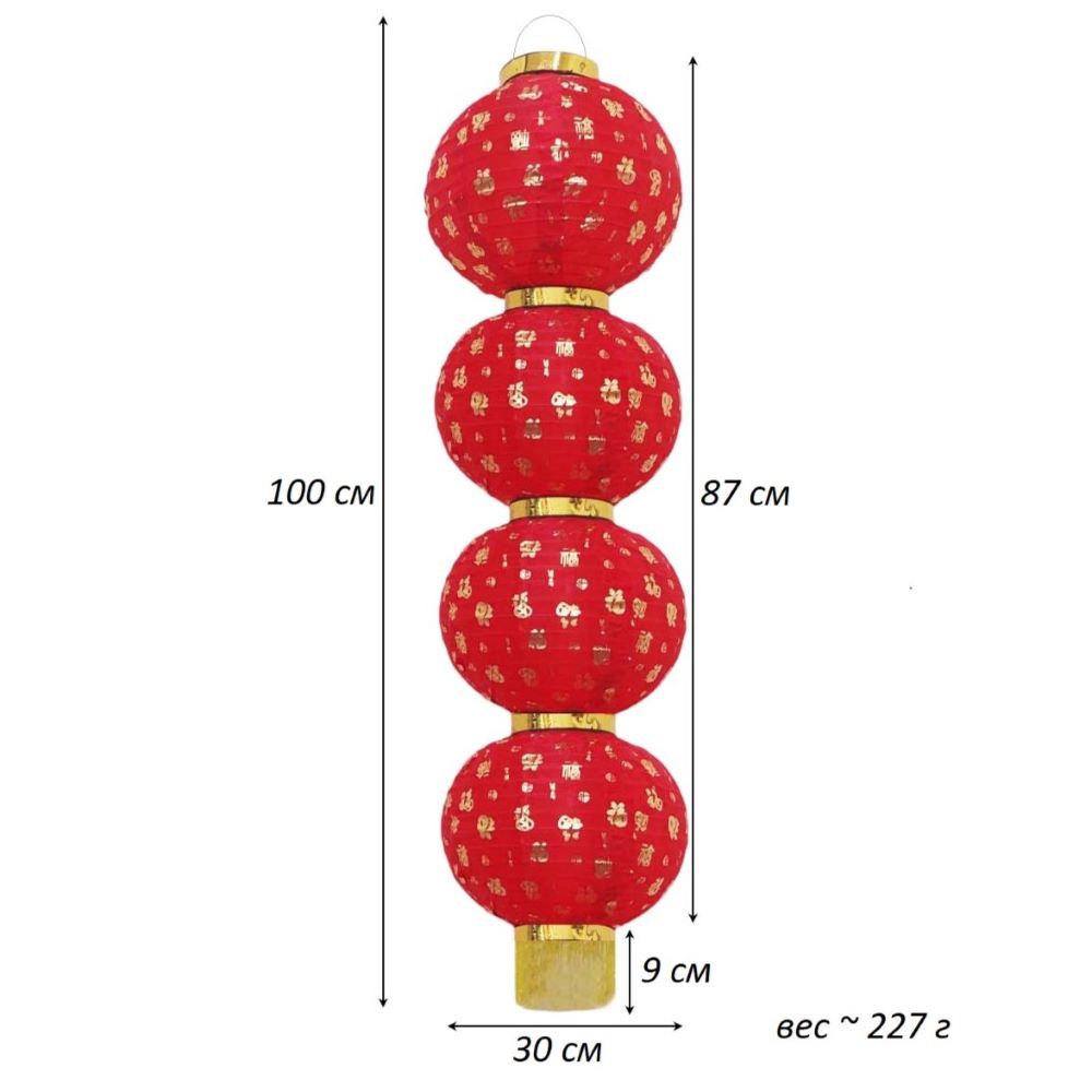 Китайский фонарь Круглый с надписью, 4 яруса 30см