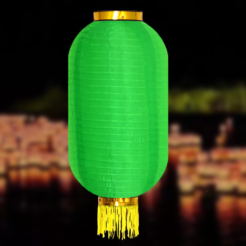 Китайский фонарь Цилиндр с бахромой 35х65 см, зеленый