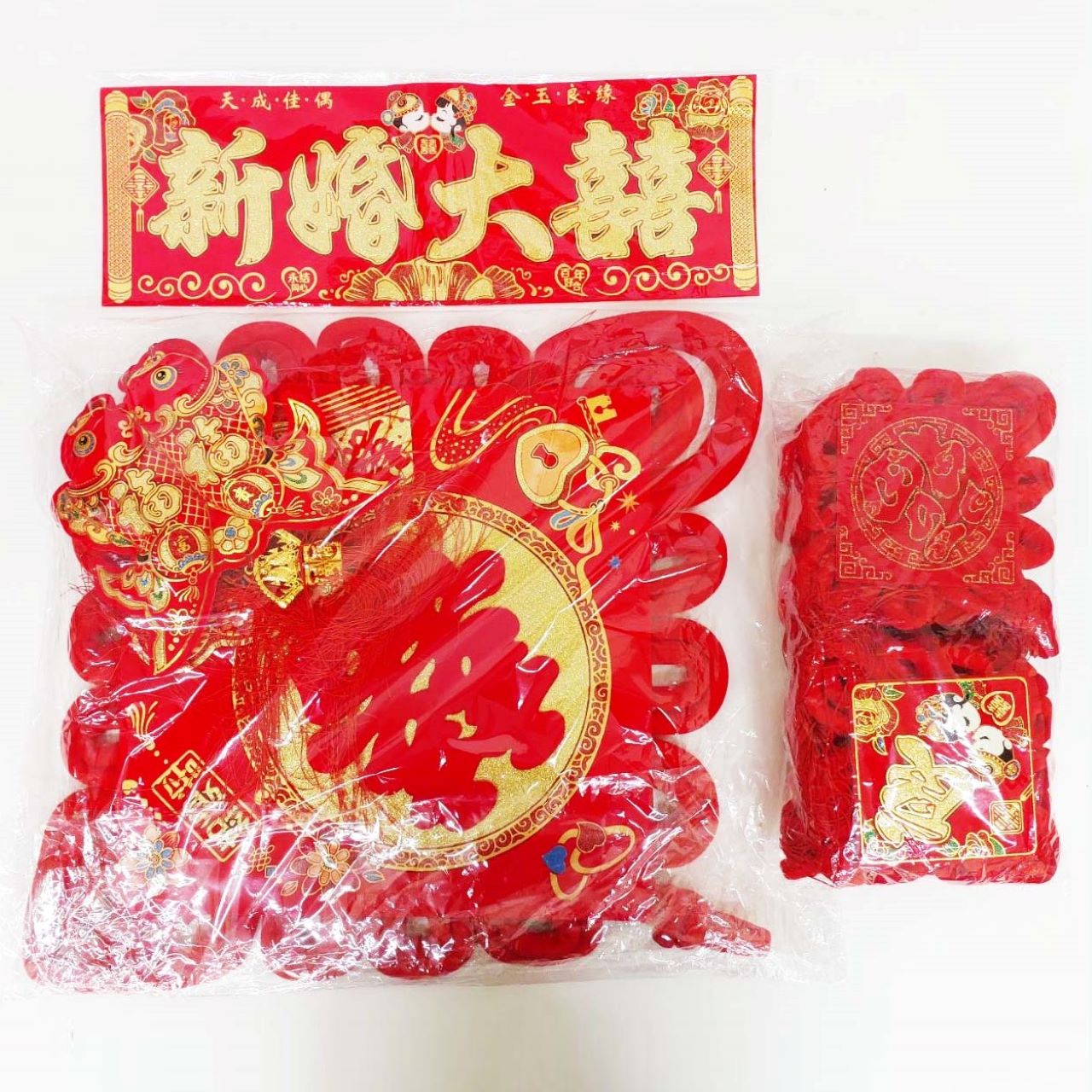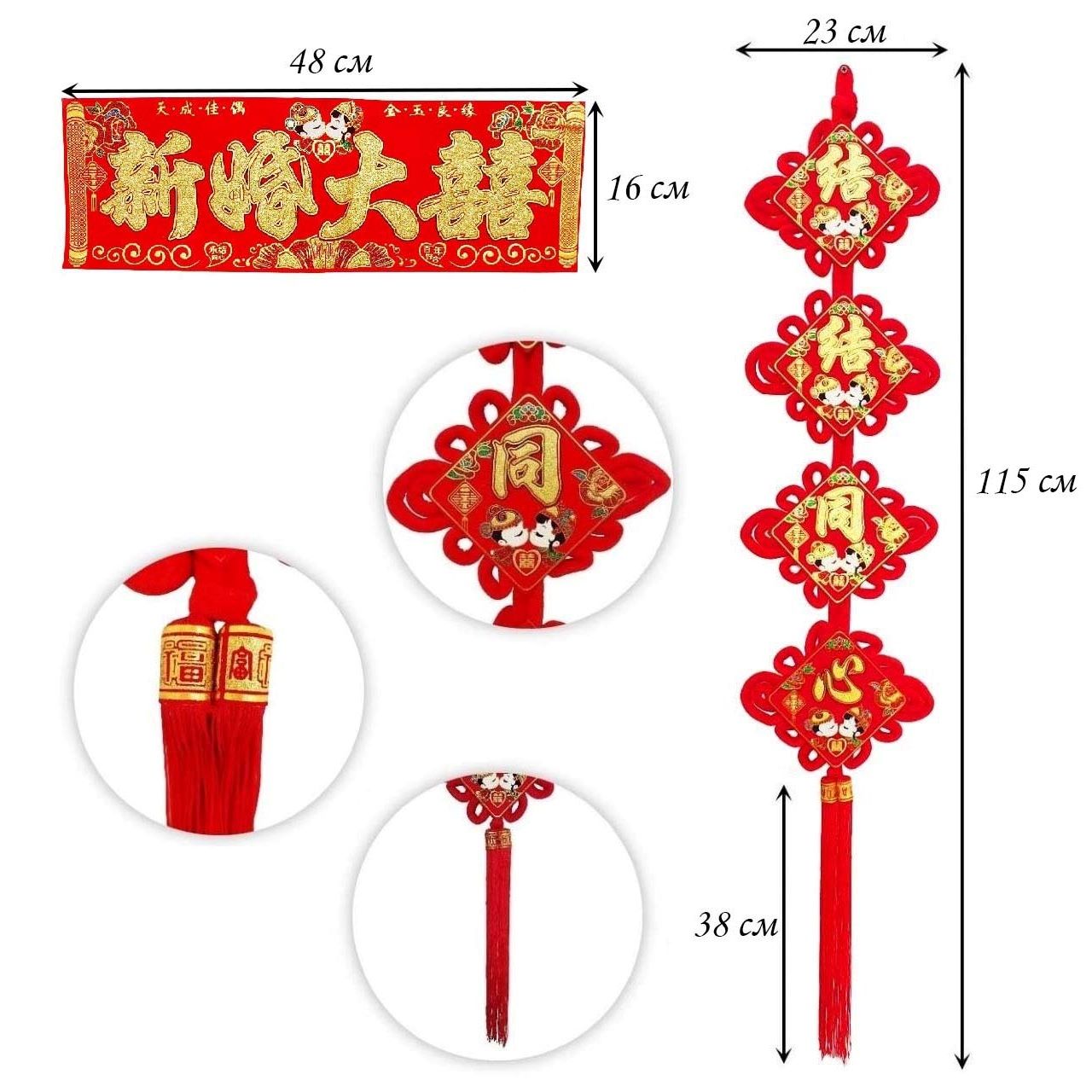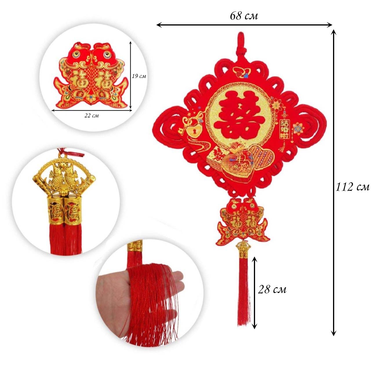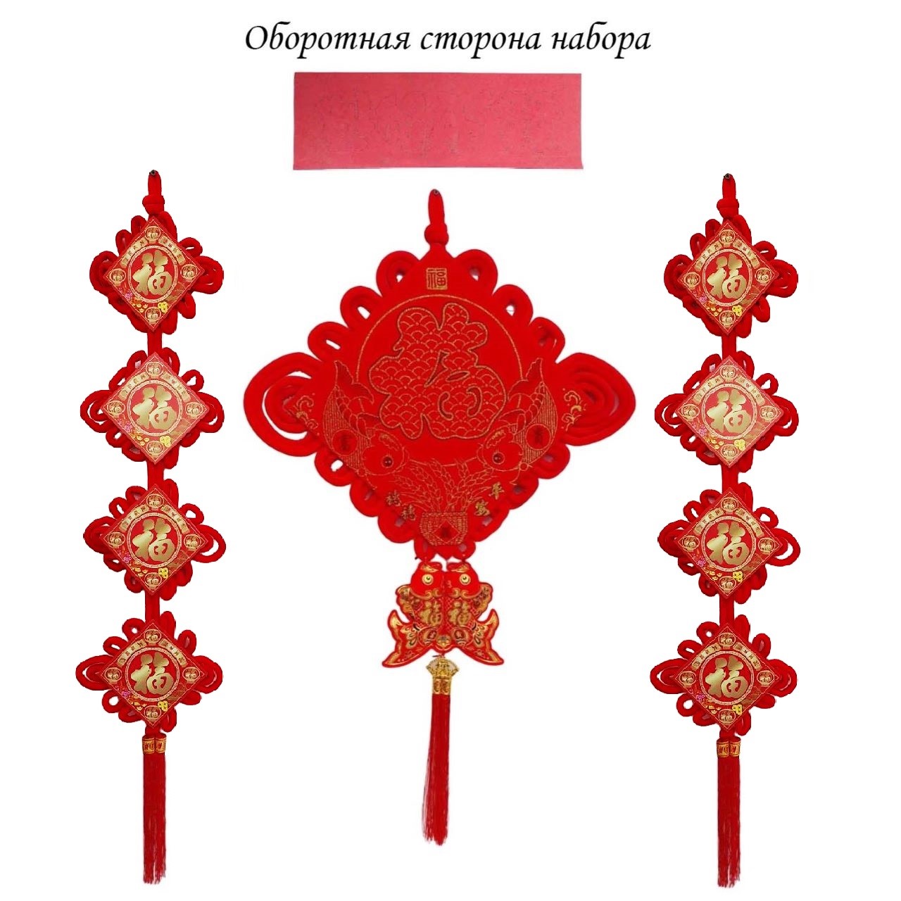 Китайский узел ромб красный НАБОР 3шт (68х112см + 23х115см + 48х16см) рыбки, Удача