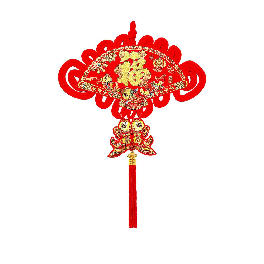 Традиционный китайский узел в форме ромба с символичным дизайном. Яркое сочетание красного бархата и золотых элементов создает эффектный акцент в интерьере.