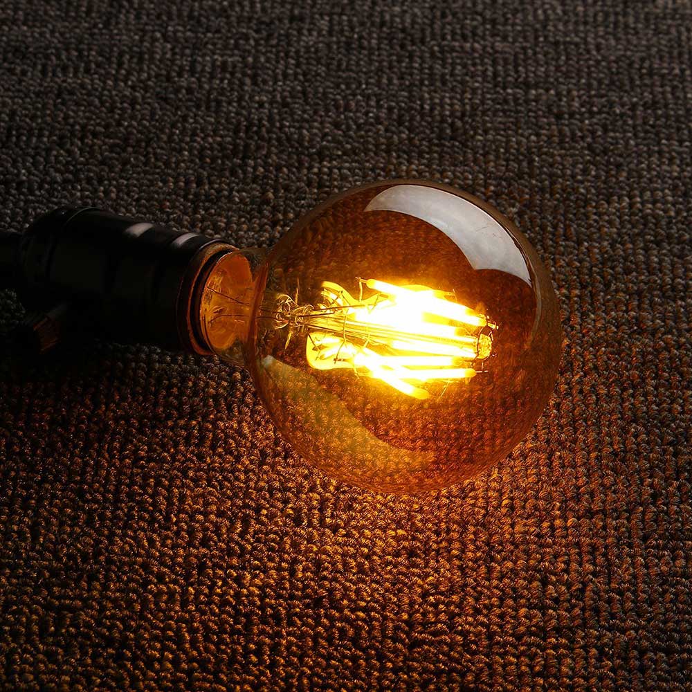 Лампа светодиодная G80 темная E27 W4 с теплотой света 2200K. Колба лампы имеет старинный источник света с светящимися нитями. Отличный выбор как для домов и квартиры в стиле лофт, так и для ресторанов, кафе. Интенсивность свечения – 600 люменов, мощность 6 и 8 Вт. Работает от переменного напряжения 220 В. Срок службы превышает 20 тысяч часов.