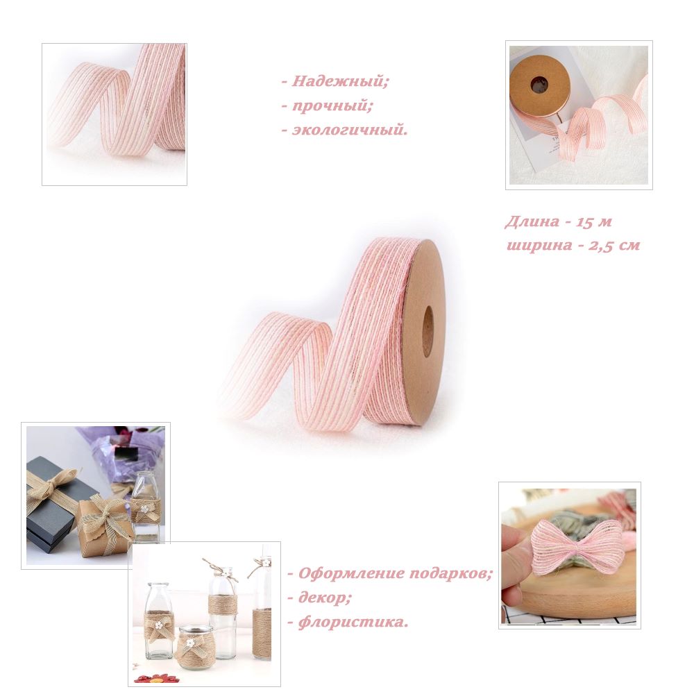 Лента из цветной мешковины,розовый 2,5см х 15м