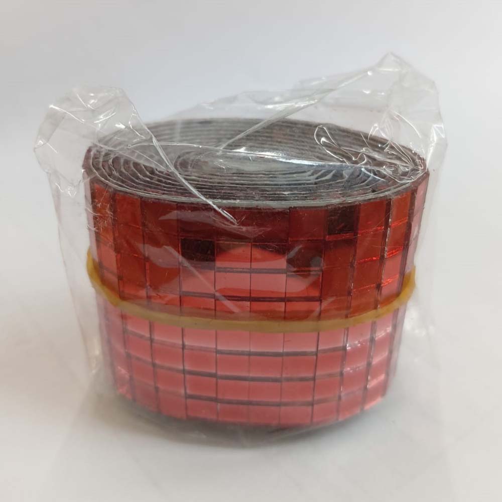 Лента самоклеящаяся зеркальная мозаика стекло, 4см х 1м 5х5мм, красный