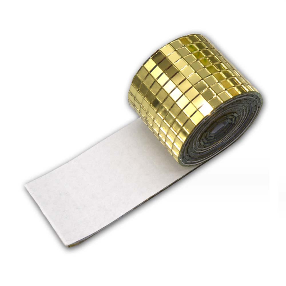 Лента самоклеящаяся зеркальная мозаика стекло, 4см х 1м 5х5мм, золото-лайм