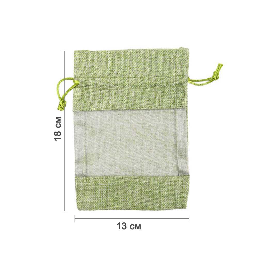 Мешочек из мешковины и органзы 13х18 см салатовый