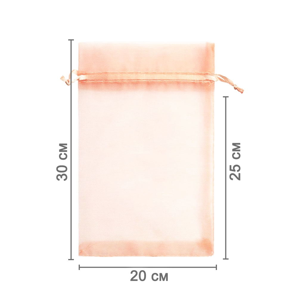 Мешочек из органзы 20 х 30 см — стильный аксессуар для упаковки средних и крупных предметов. Полупрозрачная ткань подчёркивает содержимое и придаёт аккуратный вид.