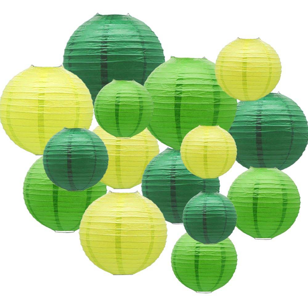 Набор подвесные фонарики 15 шт салатовый+зеленый+т.зеленый