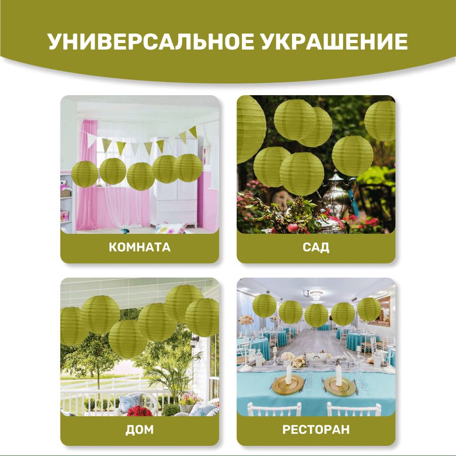 В комплект входит 8 бумажных фонариков и лента атласная.