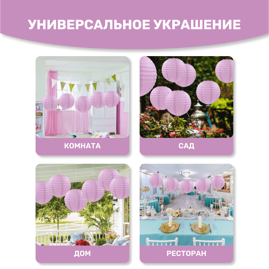 В комплект входит 8 бумажных фонариков и лента атласная.