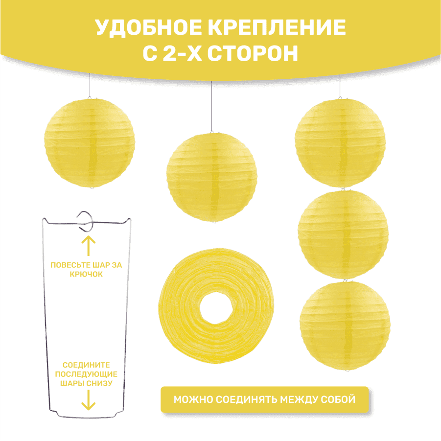 В комплект входит 8 бумажных фонариков и лента атласная.