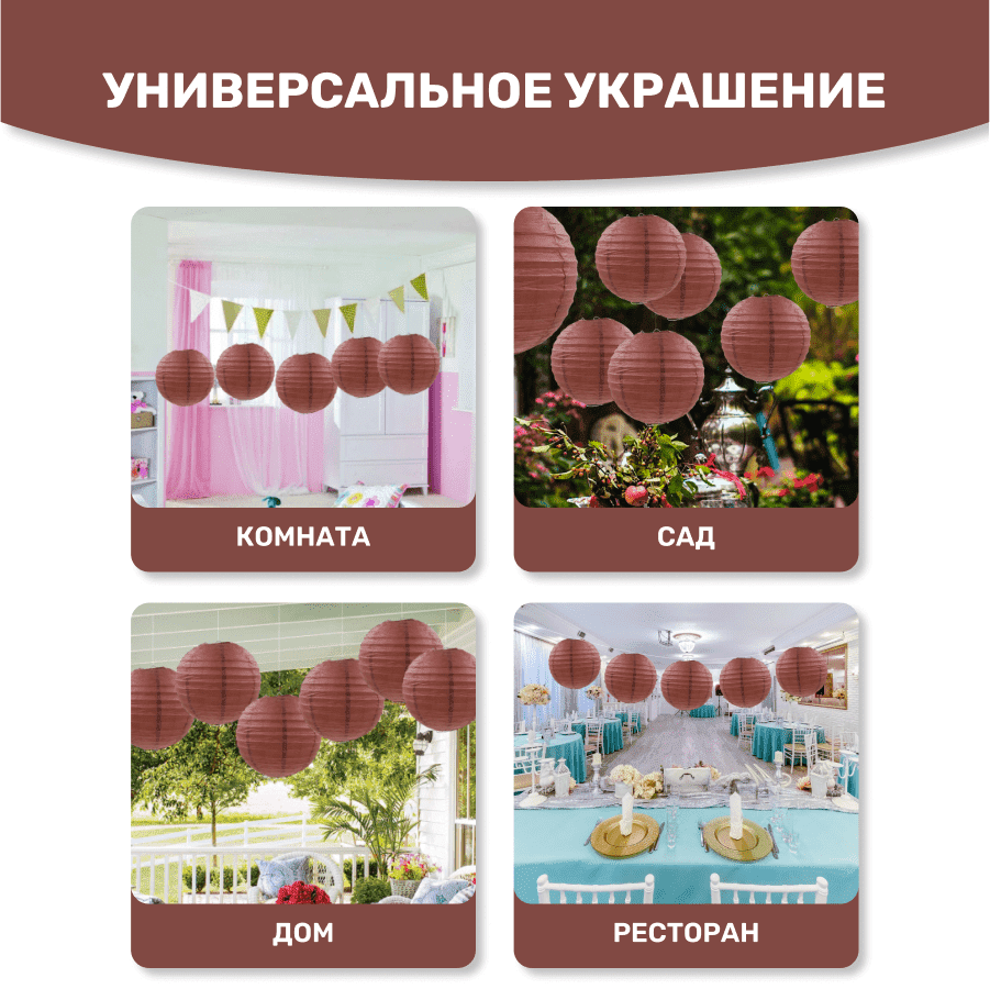 Комплект подвесные фонарики 35 см х 8 шт, коричневый