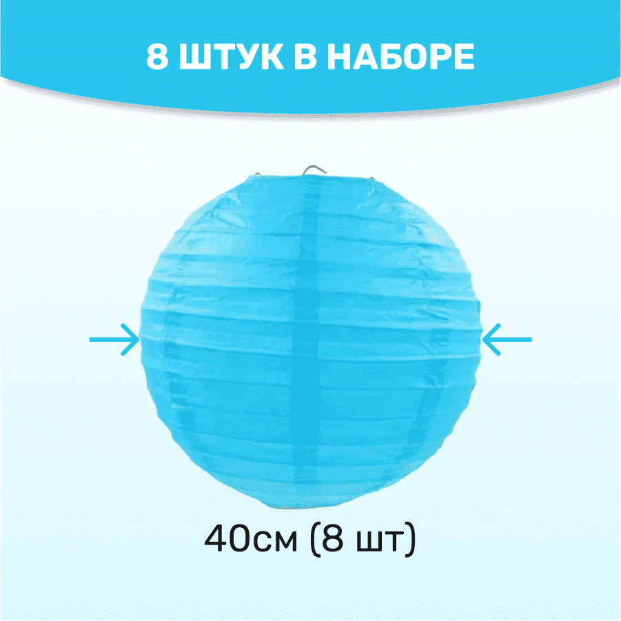 Комплект подвесные фонарики 40 см х 8 шт, светло-синий