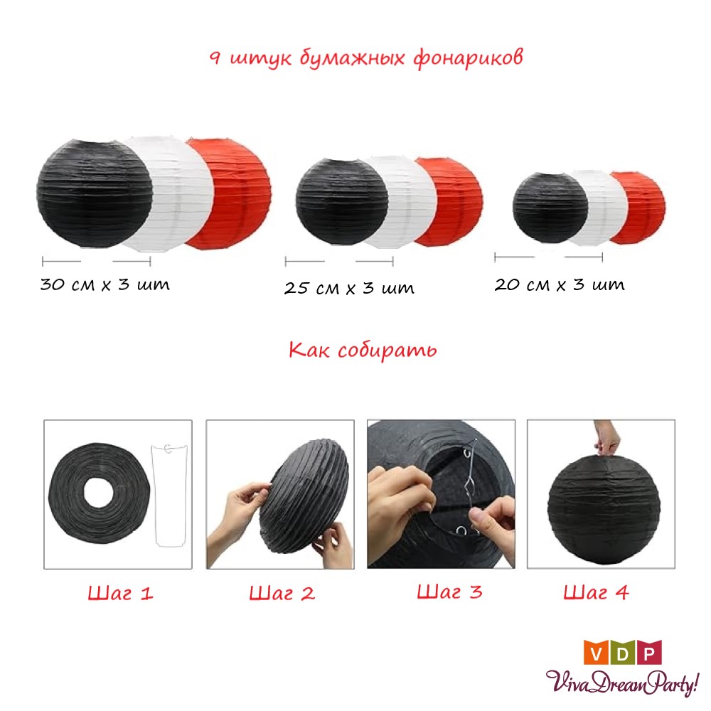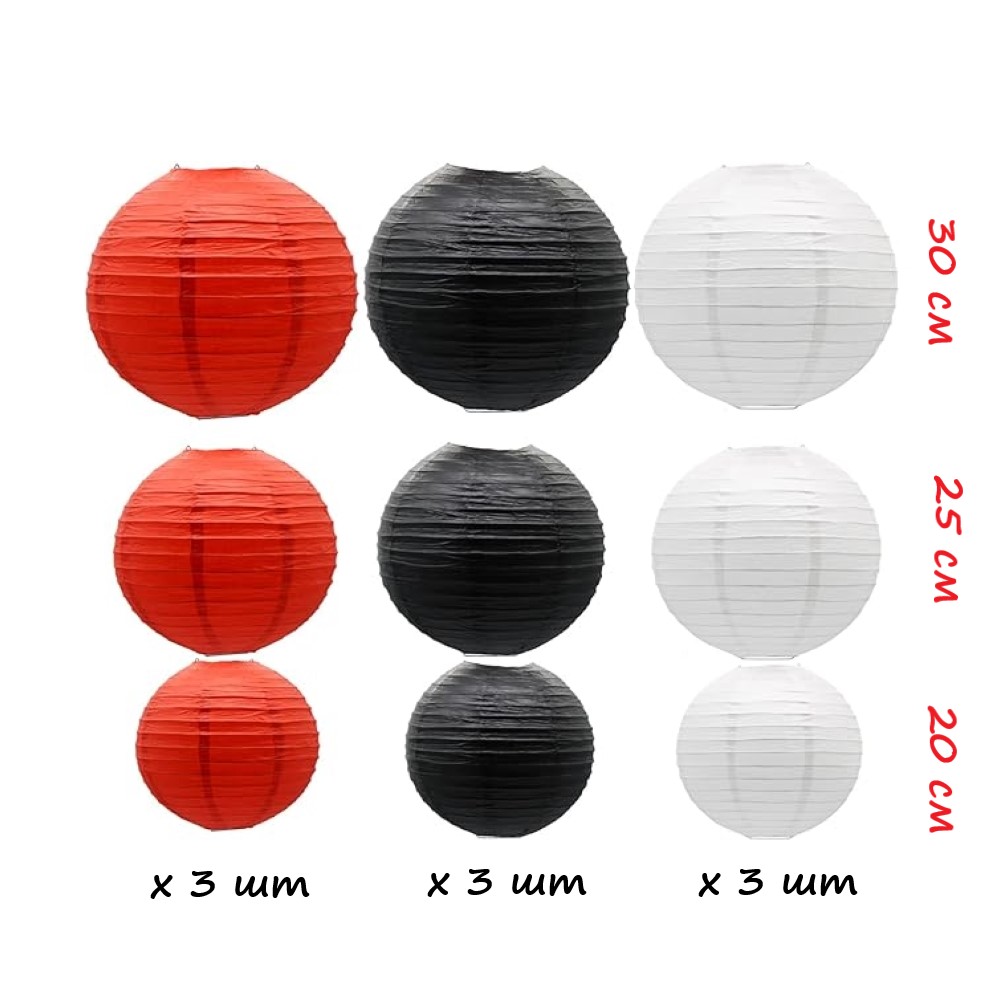 Набор подвесные фонарики 9 шт, белый+черный+красный