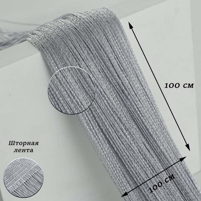 Нитяные шторы-лапша 1х1м, серебристо-серый