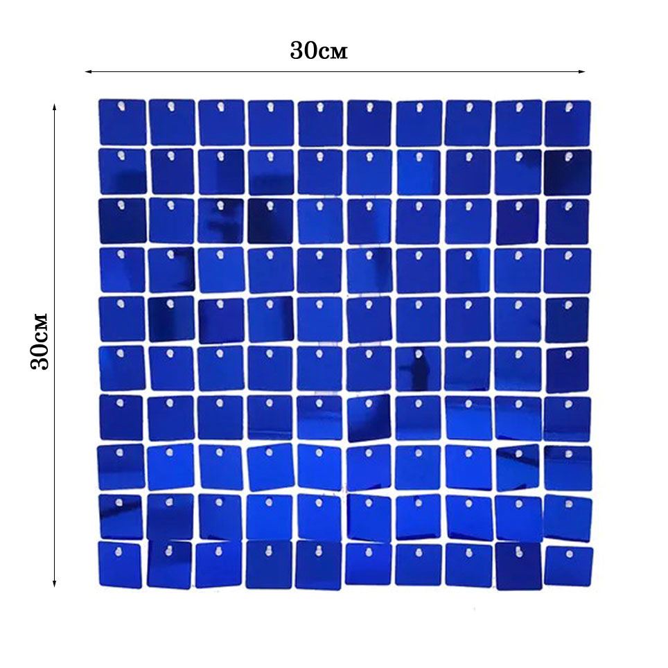 Панель с пайетками 30×30 см на гибкой пластиковой основе. Пластик прочный, хорошо гнётся и не ломается при сгибании. Пайетки переливаются при движении. Панель крепится к стенам, каркасам или соединяется с другими такими же панелями.