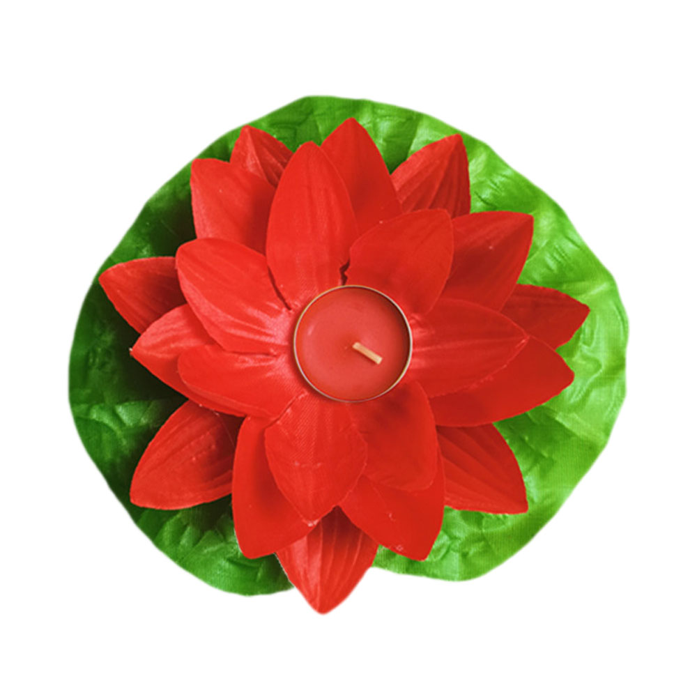 Плавающий фонарик из шелка Лотос 18х18 см красный