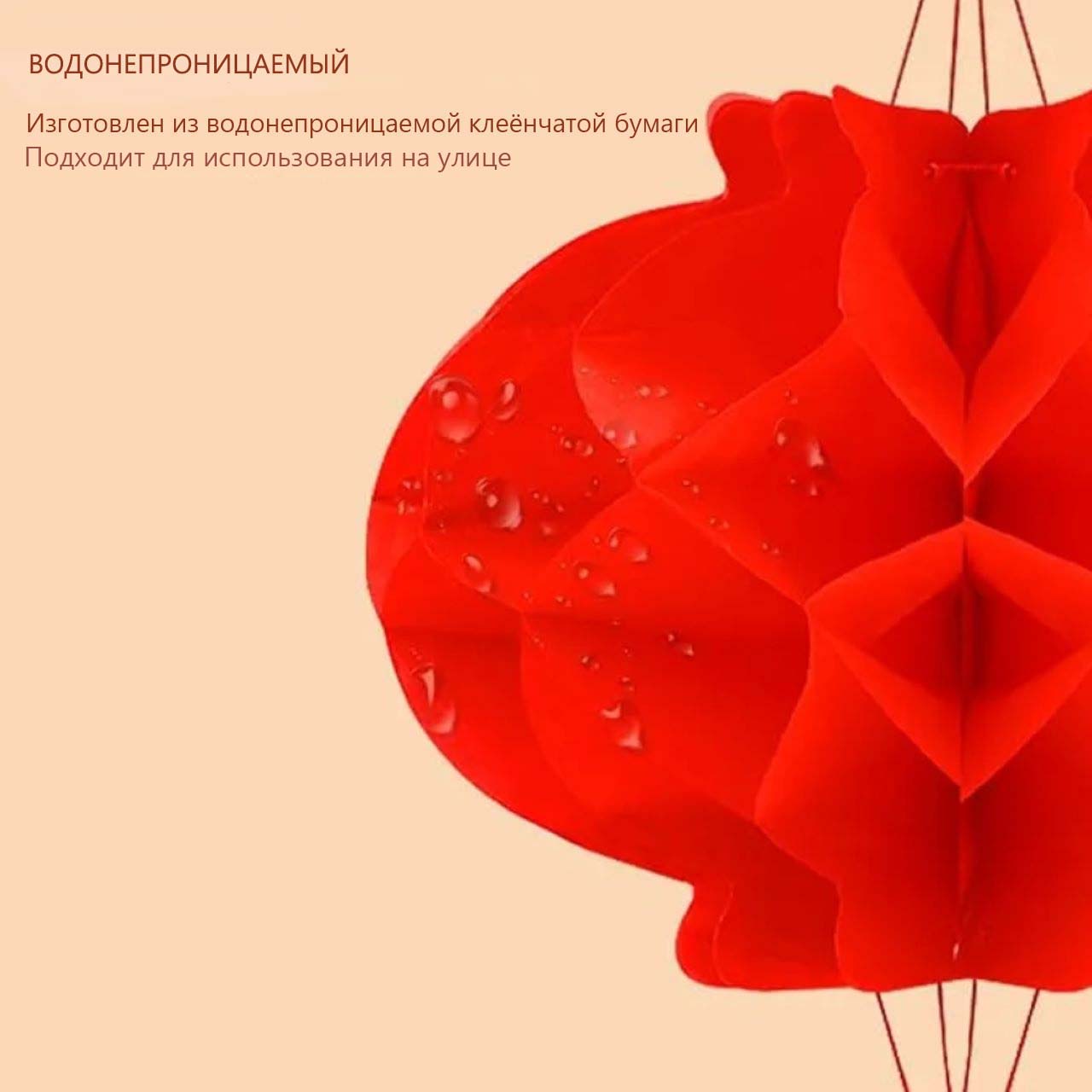 Простота в использовании: Бумажные фонарики имеют форму пчелиных сот с плотными отверстиями, их легко разворачивать и сворачивать. Раскройте концы и склейте их вместе (белая липкая двусторонняя лента на одном конце). Красный бумажный фонарь с кольцом и веревкой сверху легко подвешивается и снимается.