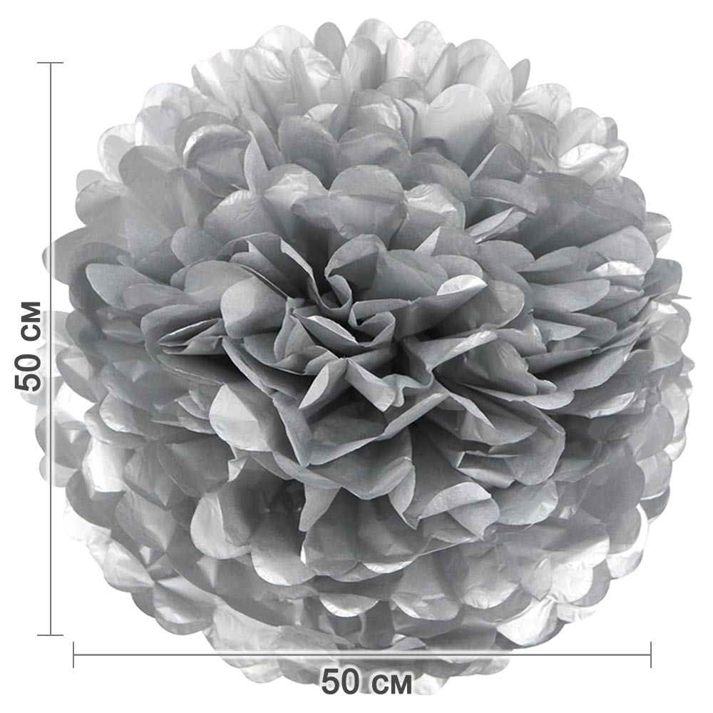 Серебряный бумажный помпон диаметром 50 см — стильное и лёгкое украшение для праздников, фотозон, витрин и интерьера. Отлично подойдёт для дней рождений, свадеб, вечеринок и тематических мероприятий.