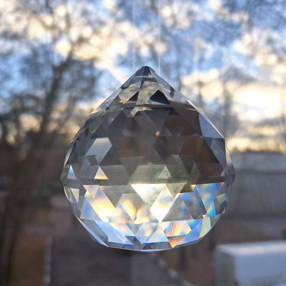 Подвесьте кристалл и он будет радовать вас радужными бликами благодаря своей огранке.