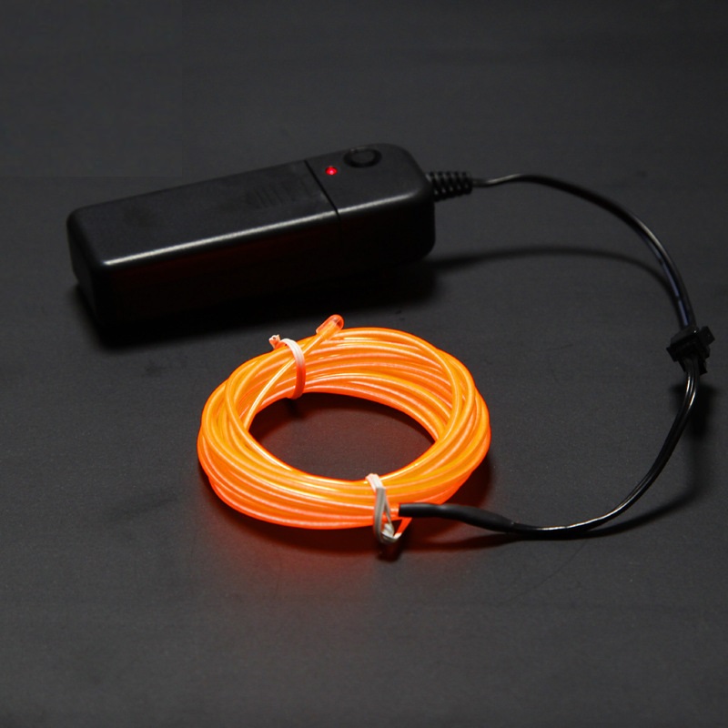 В комплекте с EL проводом, длинной 3 метра,  идет бокс с питанием от батареек, что позволяет его применять где угодно, даже на улице.  Работает от 2-х батареек 2АА (батареек в комплекте нет).