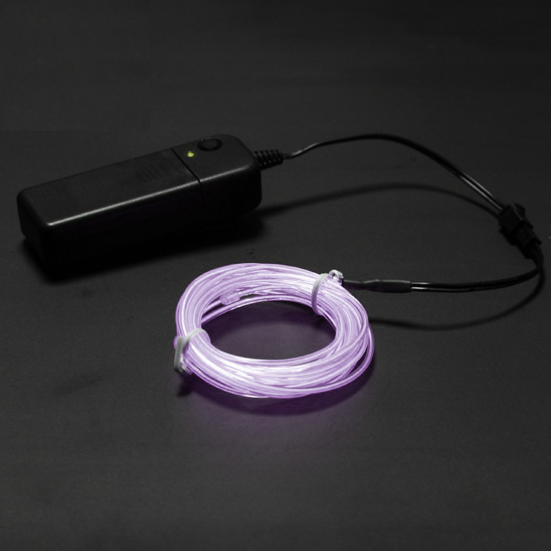 В комплекте с EL проводом, длинной 5 метра,  идет бокс с питанием от батареек, что позволяет его применять где угодно, даже на улице.  Работает от 2-х батареек 2АА (батареек в комплекте нет).
