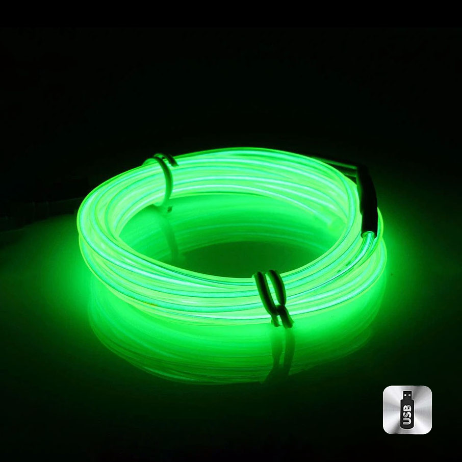 Шнур неоновый светящийся от USB 3 м, лайм