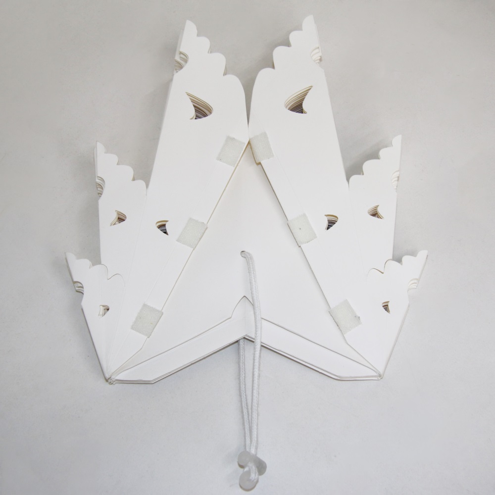 Снежинка на липучках размером 60 см, белого цвета, изготовлена из высококачественной бумаги.