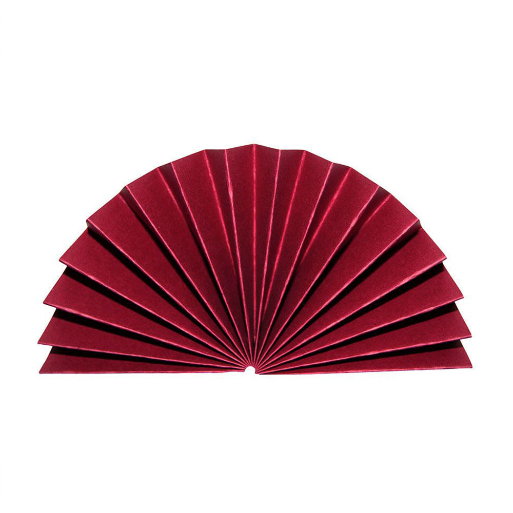 Веер легко раскрывается, фиксируется в форме полукруга или круга и сохраняет аккуратный внешний вид. В сложенном виде занимает минимум места, что удобно для хранения и повторного использования.