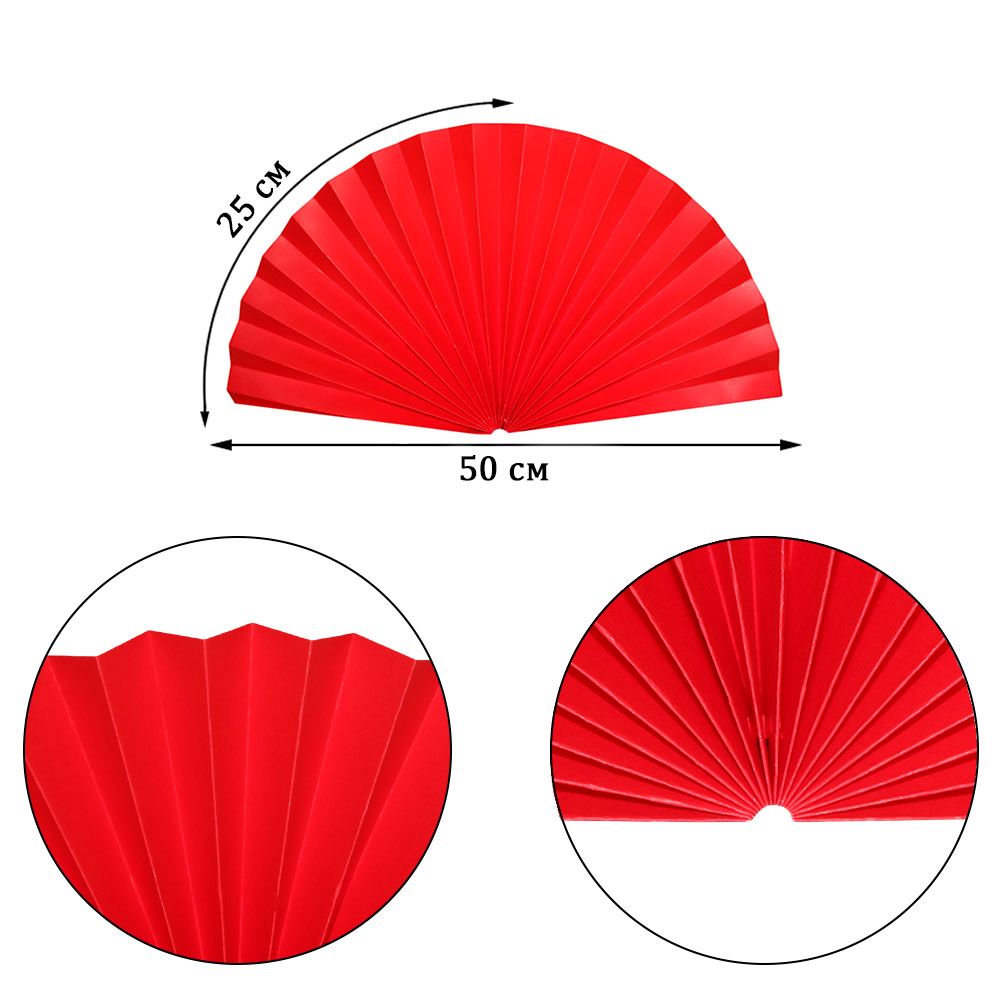 Веер-гармошка 160г/м 50 см, ярко-красный