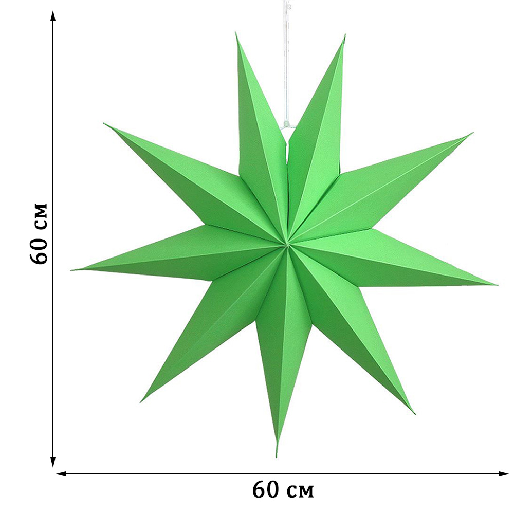 Объёмная девятиконечная звезда 60 см — декоративный элемент для интерьера и праздничного оформления. Лёгкая интерьерная звезда из картона хорошо держит форму и создаёт выразительный объём. Поставляется в сложенном виде, в комплекте шнур для фиксации объёма и подвеса.